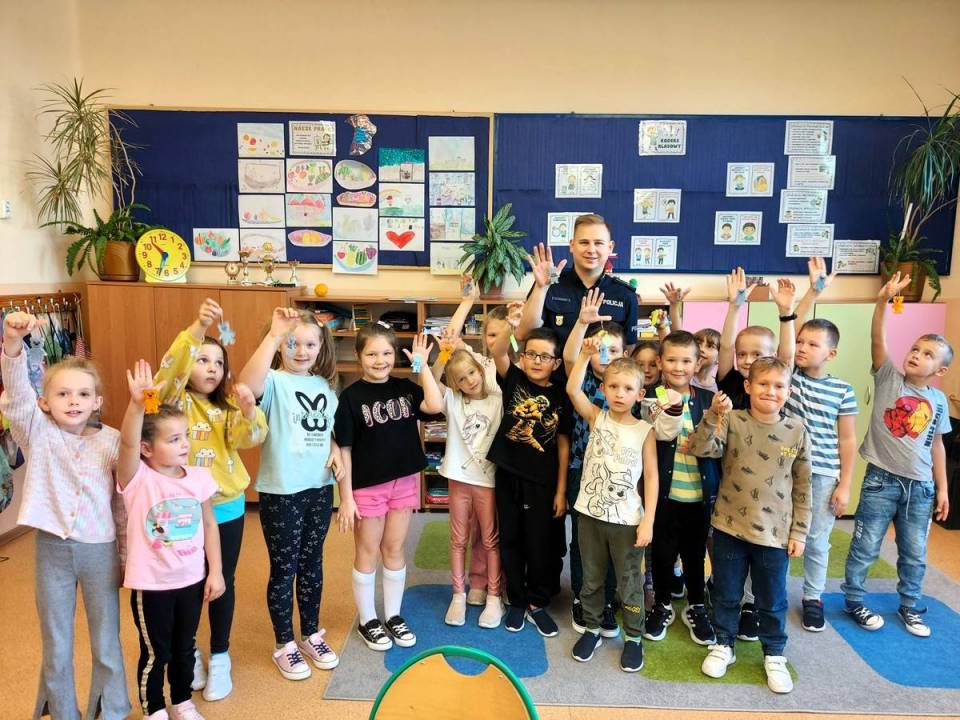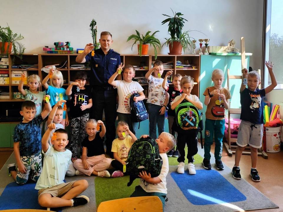 W środę 18 września, takie spotkanie zostało przeprowadzone przez policjanta zajmującego się zagadnieniami profilaktyki społecznej w Szkole Podstawowej w Widawie. Pierwszaki już wiedzą jak poruszać się po drogach oraz jakie zachowania wpływają na ich bezpieczeństwo. Urząd Gminy Widawa przekazał policjantom zawieszki i opaski odblaskowe, które będą rozdawane podczas pogadanek z najmłodszymi na terenie tej gminy. Dziękujemy za zaangażowanie oraz wsparcie działań profilaktycznych. Pierwsze odblaski trafiły już do najmłodszych ze Szkoły Podstawowej w Widawie.