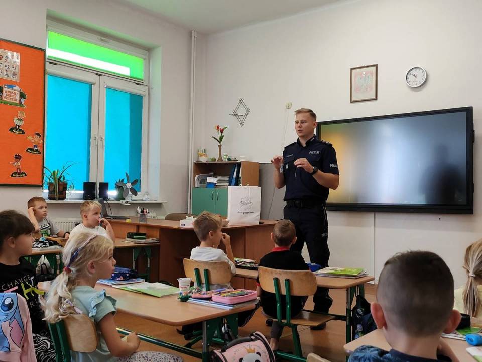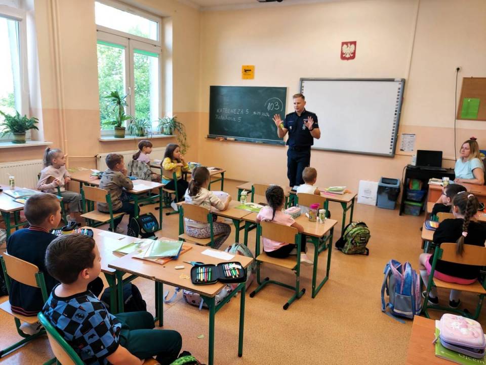 Jednym z zadań policjantów w ramach działań „Bezpieczna droga do szkoły" jest przeprowadzanie z dziećmi zajęć profilaktyczno-edukacyjnych, mających na celu kształtowanie prawidłowych nawyków komunikacyjnych oraz uświadamianie, z jakimi zagrożeniami mogą się spotkać podczas drogi do i ze szkoły. Funkcjonariusze pomagają w przygotowaniu uczniów szkół podstawowych, szczególnie pierwszoklasistów, do świadomego i odpowiedzialnego korzystania z dróg. Spotkania są także okazją do przekazania dzieciom elementów odblaskowych, dzięki którym będą lepiej widoczne na drodze po zmroku.