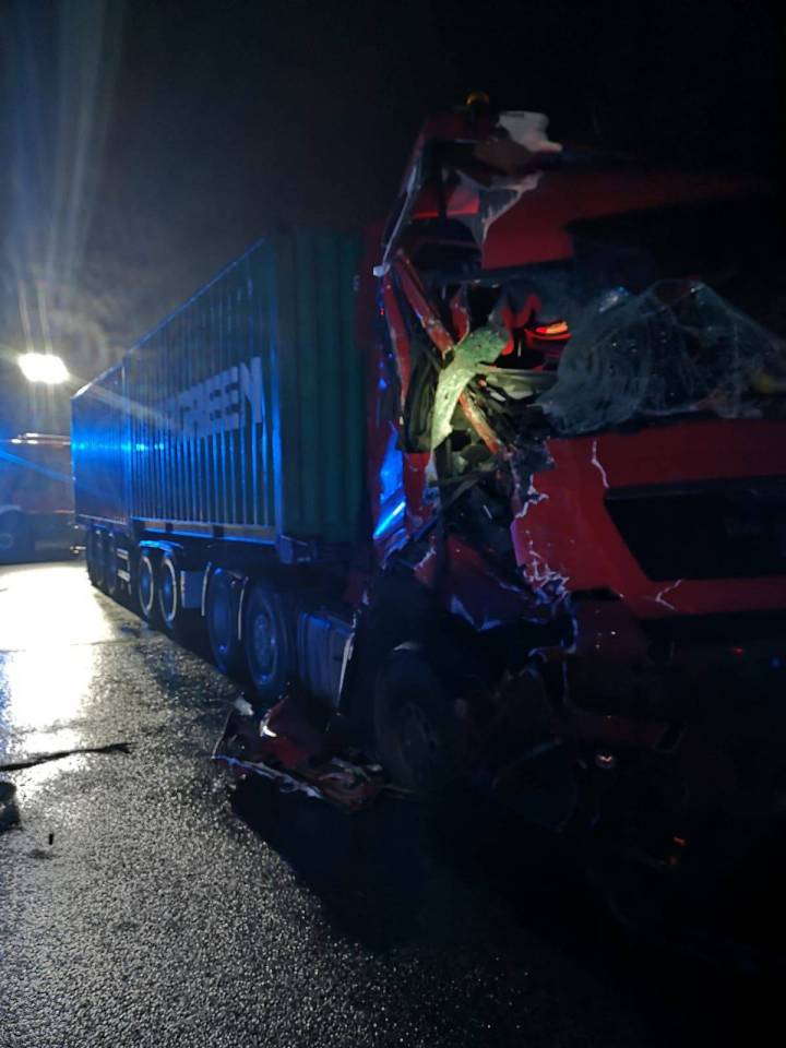 A1: Tir wjechał w wóz OSP. Druhowie wracali z akcji, sami zostali poszkodowani [Foto]