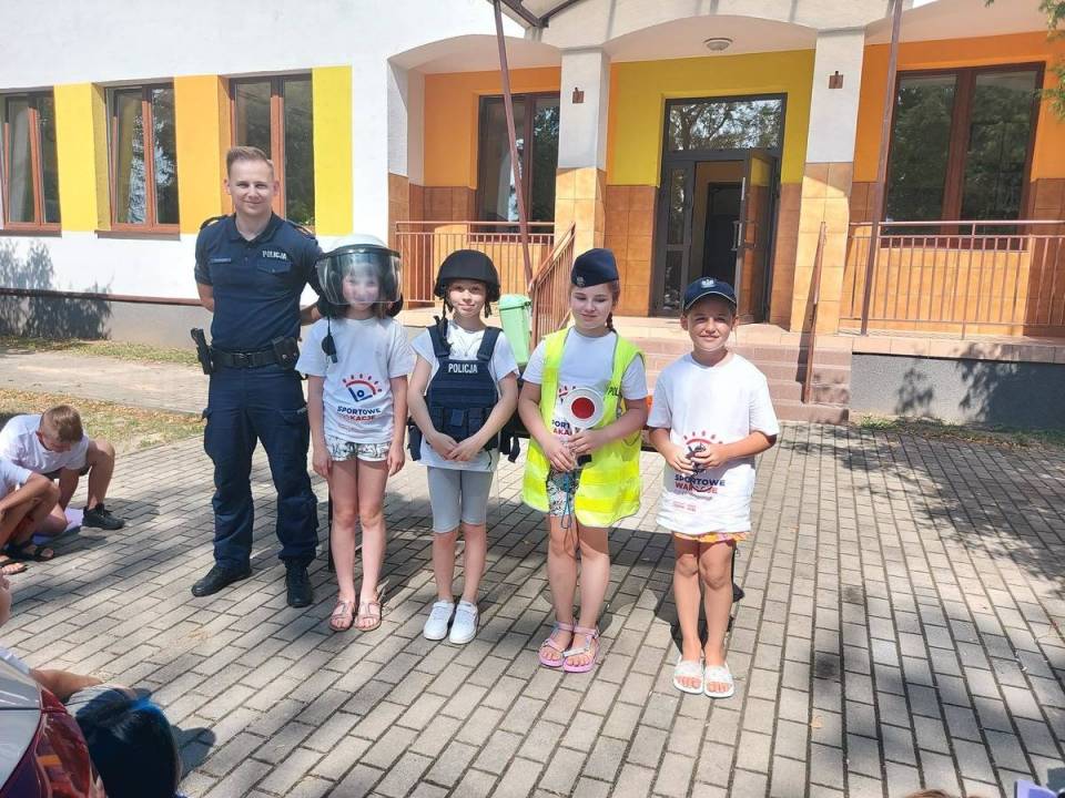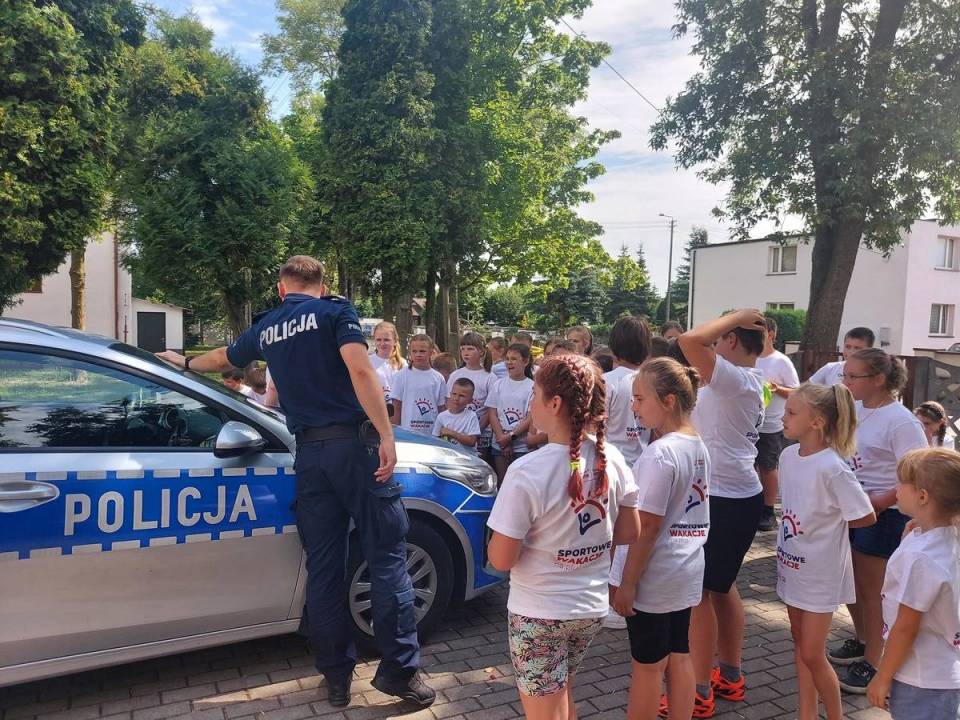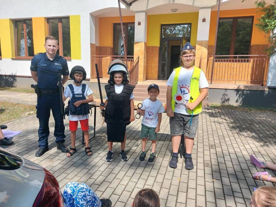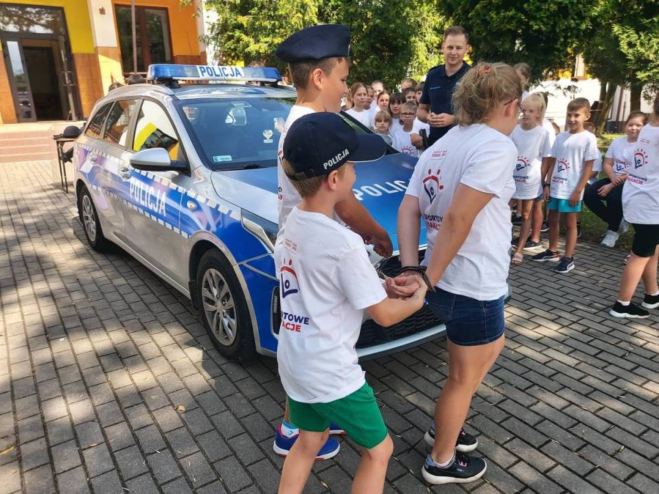 Spotkanie nie obyło się bez największej atrakcji, czyli pokazu policyjnego wyposażenia i radiowozu. Na zakończenie każdy uczestnik półkolonii mógł zasiąść za kierownicą i chociaż przez chwilę wczuć się w rolę policjanta. Dzieci, które wykazały szczególną aktywność w rozmowie z policjantem i odpowiadały poprawnie na jego pytania, otrzymały drobne upominki ufundowane przez Fundację PZU.