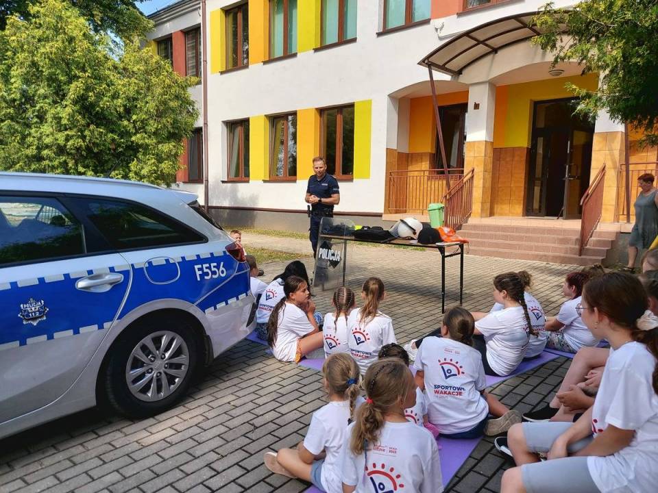 Okres letniego wypoczynku dzieci i młodzieży to czas wzmożonych działań profilaktycznych policjantów na rzecz szeroko rozumianego bezpieczeństwa. Policyjny profilaktyk z łaskiej komendy spotkał się z dziećmi wypoczywającymi na półkoloniach w Szkole Podstawowej imienia Jana Pawła II w Chociwu.