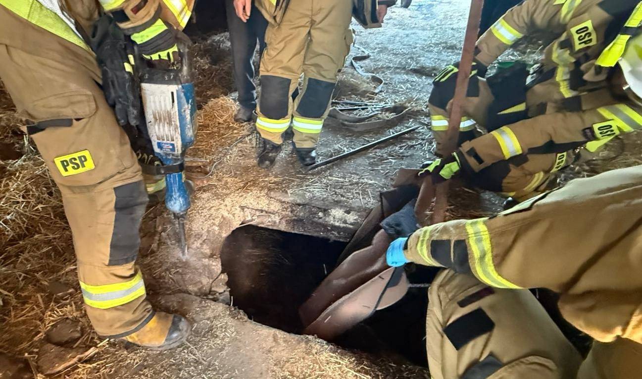 Akcja ratunkowa nie należała do łatwych. Strażacy musieli działać w bardzo wymagających warunkach – w ciasnej przestrzeni obory, przy śliskim i niebezpiecznym podłożu. W działaniach wykorzystano sprzęt burzący, pasy transportowe oraz ciągnik rolniczy wyposażony w tzw. „tura". Wszystkie czynności wymagały współpracy, siły oraz precyzji, aby nie doprowadzić do dodatkowych obrażeń zwierzęcia.