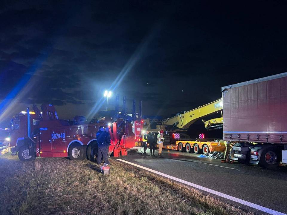 W okolicach miejscowości Florianki zderzyły się dwie ciężarówki – w tym zestaw oversize przewożący maszynę budowlaną – oraz samochód osobowy pełniący funkcję pilota transportu ponadnormatywnego.W wyniku wypadku śmierć na miejscu poniósł kierowca TIR-a. Jak przekazuje bryg. Jędrzej Pawlak, oficer prasowy KW PSP w Łodzi mężczyzna doznał tak poważnych obrażeń, że służby ratownicze – po przybyciu na miejsce – odstąpiły od próby ewakuacji z pojazdu.