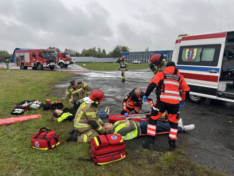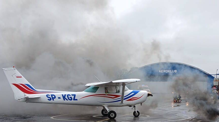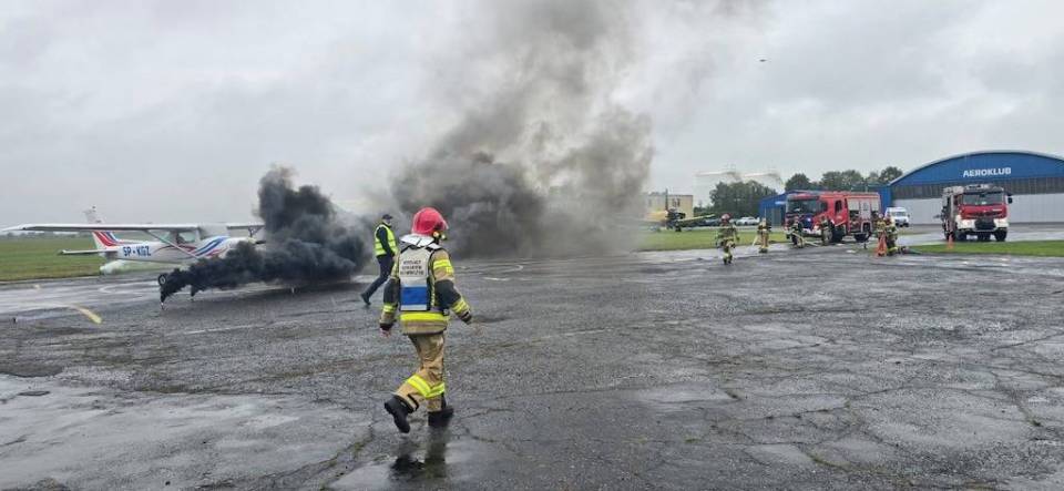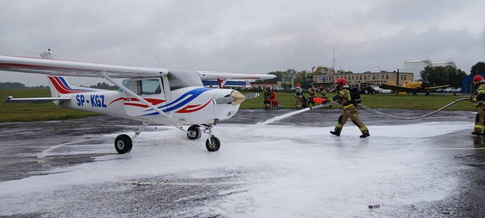 Na sygnał alarmowy natychmiast zareagowały służby. Strażacy błyskawicznie zabezpieczyli miejsce pozorowanej katastrofy, wykorzystując pianę gaśniczą, a następnie wydobyli nieprzytomną załogę samolotu. Równolegle zespoły ratownictwa medycznego udzieliły pierwszej pomocy i przetransportowały „poszkodowanych" do szpitala. Teren lotniska został zabezpieczony przez policję, a operacje lotnicze wstrzymano na czas akcji ratowniczej, zgodnie z wydanym NOTAM-em – oficjalnym ostrzeżeniem dla ruchu lotniczego.