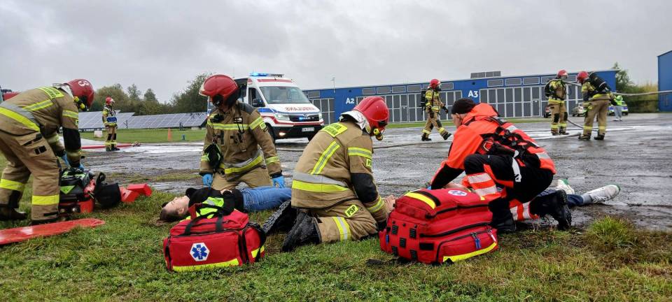 W ćwiczeniach udział wzięły m.in. Jednostka Ratowniczo-Gaśnicza z Piotrkowa Trybunalskiego, zespoły ratownictwa medycznego oraz policja.