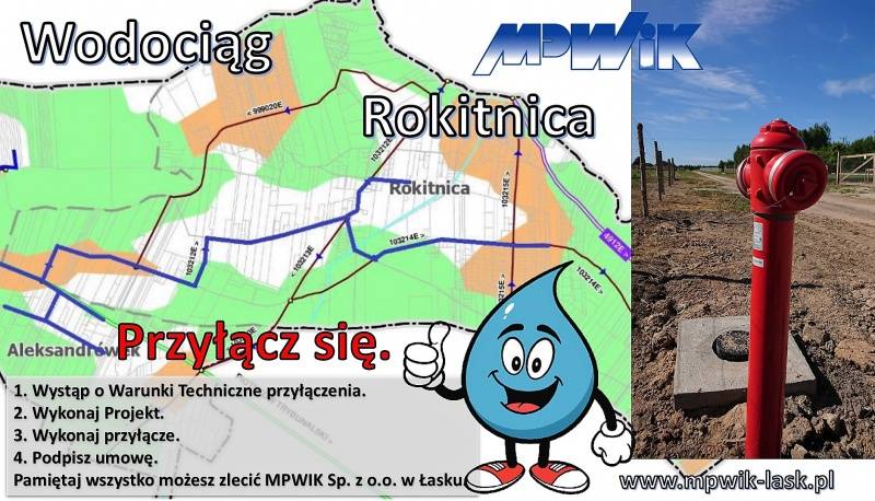 Samorząd Gminy Łask zakończył budowę kolejnych kilometrów sieci wodociągowej. Infrastruktura powstała w dwóch miejscowościach: Rokitnicy i Aleksandrówku. Mieszkańcy zainteresowani przyłączem do sieci już mogą składać stosowne wnioski do Miejskiego Przedsiębiorstwa Wodociągów i Kanalizacji.