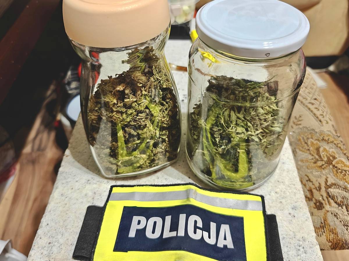 Następnie policjanci udali się z mężczyzną do jego miejsca zamieszkania. W trakcie przeszukania policjanci znaleźli dwa słoiki z suszem roślinnym. Po przeprowadzeniu badań i zważeniu zabezpieczonego suszu okazało się, że jest to ponad 55 gramów marihuany. Mężczyzna powiedział policjantom, że pochodzi ona z jego własnej uprawy.