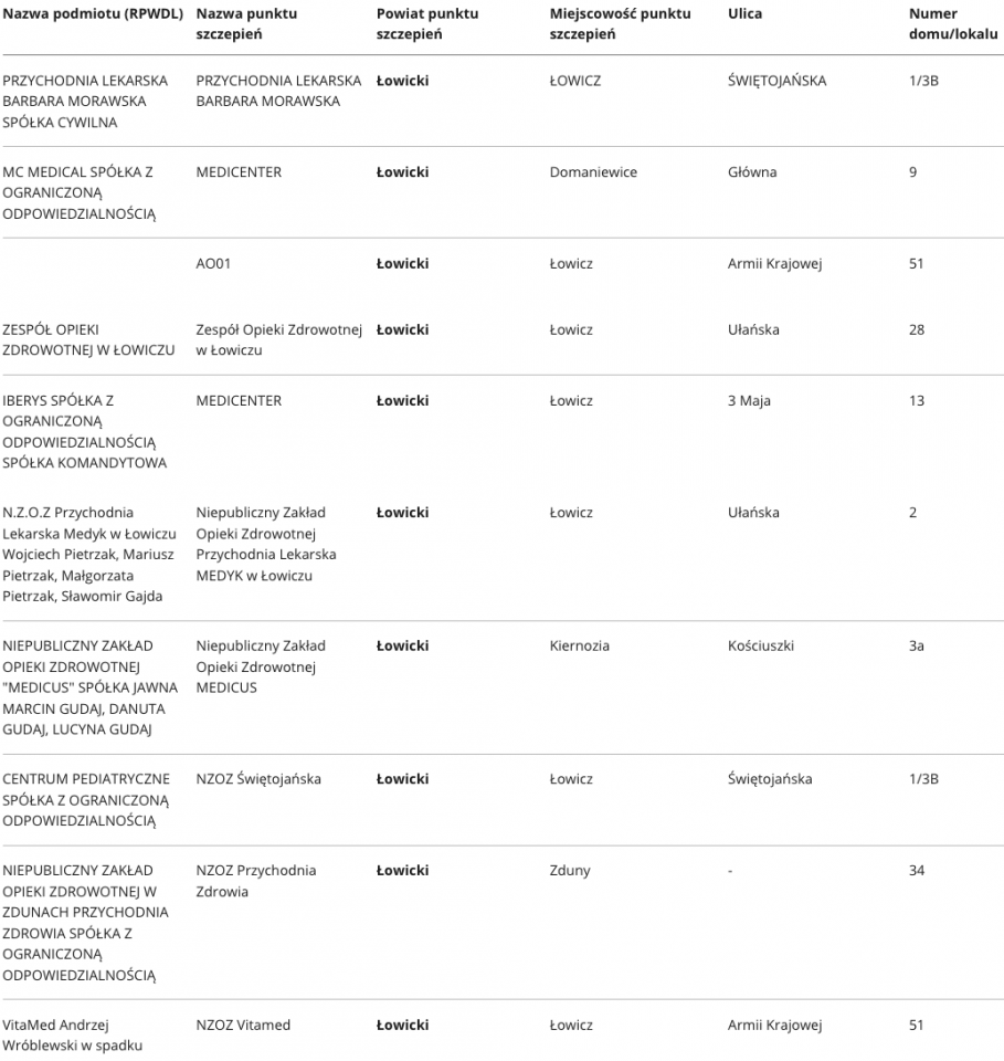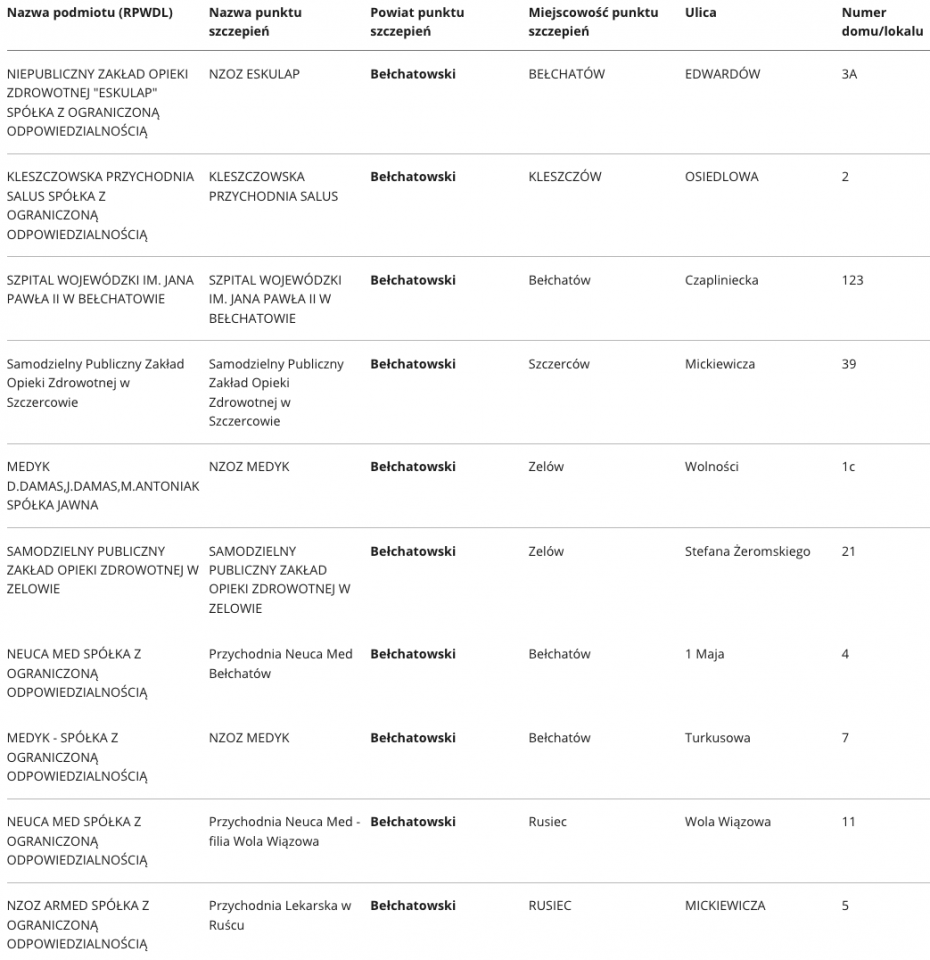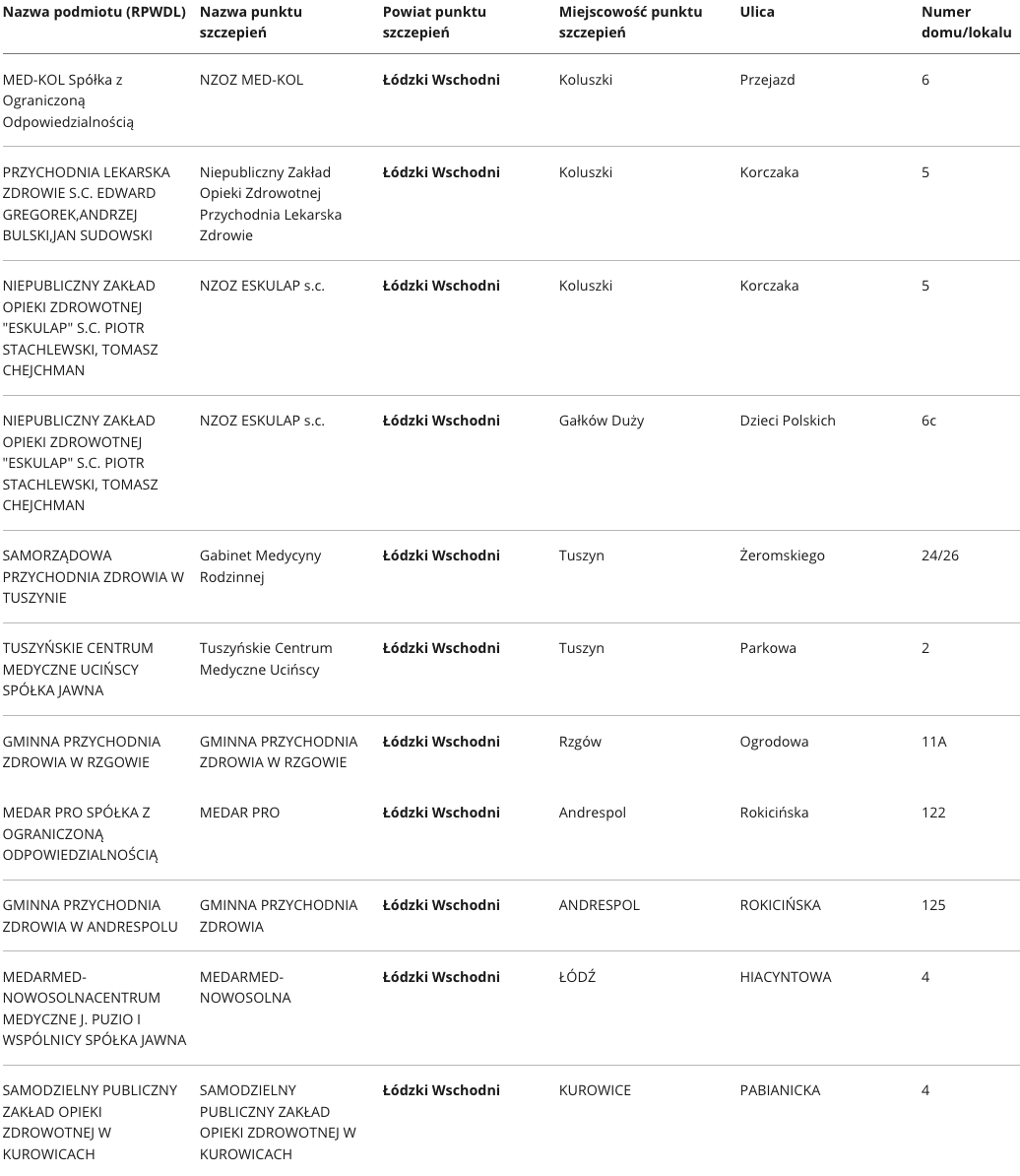 W województwie łódzkim aktualnie zaakceptowano ponad 400 punktów, w których odbywać się będą szczepienia na Covid-19. Specjalnie dla Państwa prezentujemy wykaz punktów, z podziałem na poszczególne powiaty.