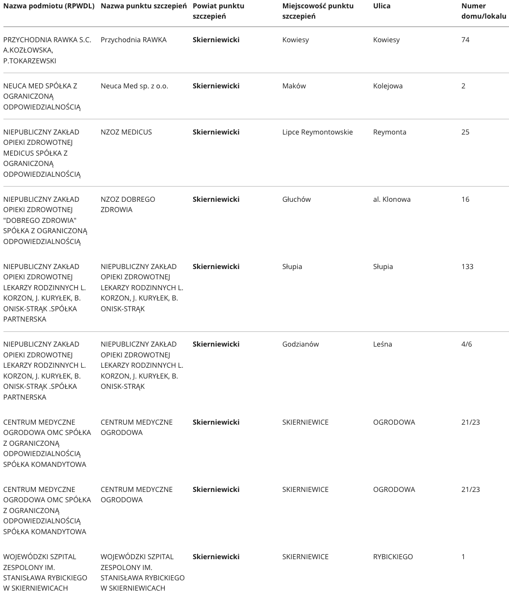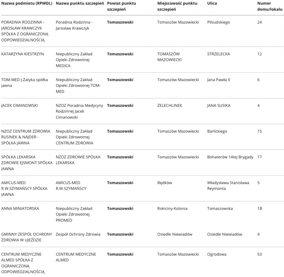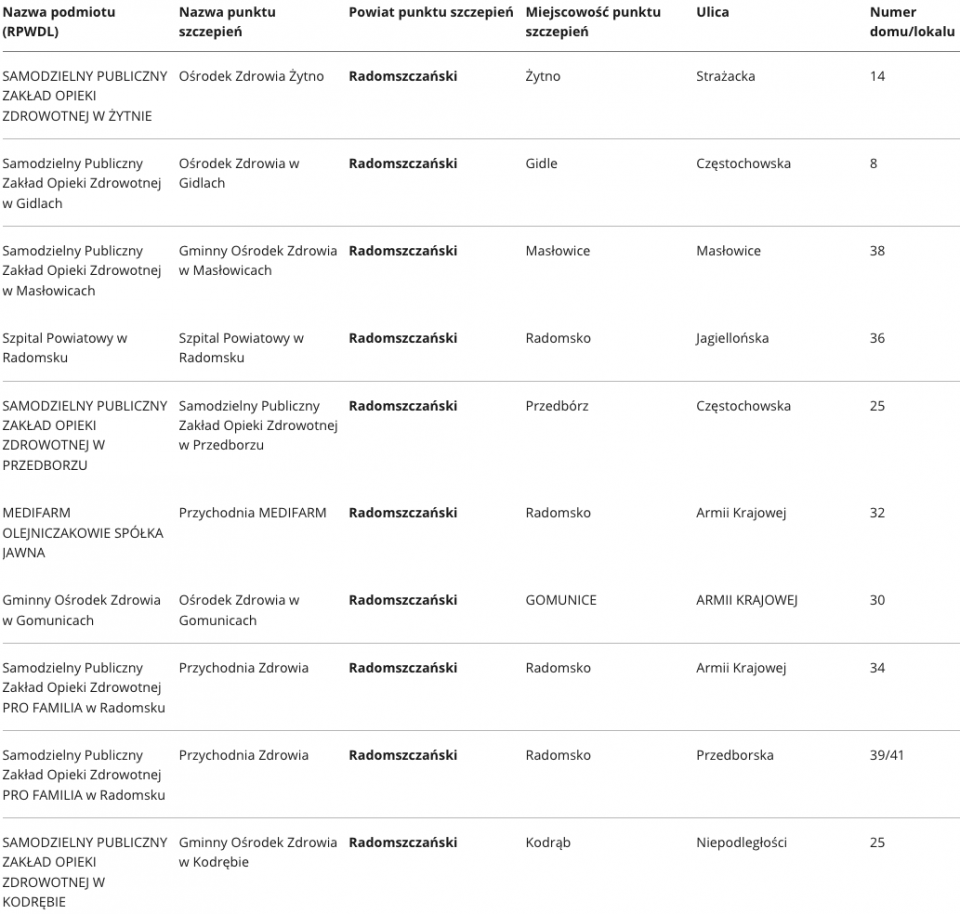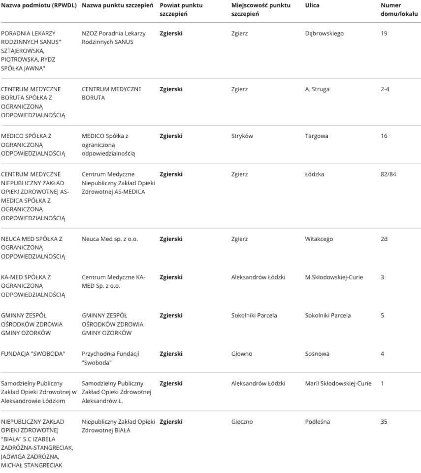 W województwie łódzkim aktualnie zaakceptowano ponad 400 punktów, w których odbywać się będą szczepienia na Covid-19. Specjalnie dla Państwa prezentujemy wykaz punktów, z podziałem na poszczególne powiaty.