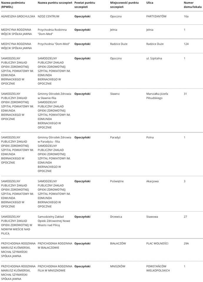 Na stronach rządowych opublikowano mapę punktów szczepień na Covid-19. Lista miejsc, w których będzie można zaszczepić się będzie na bieżąco aktualizowana.