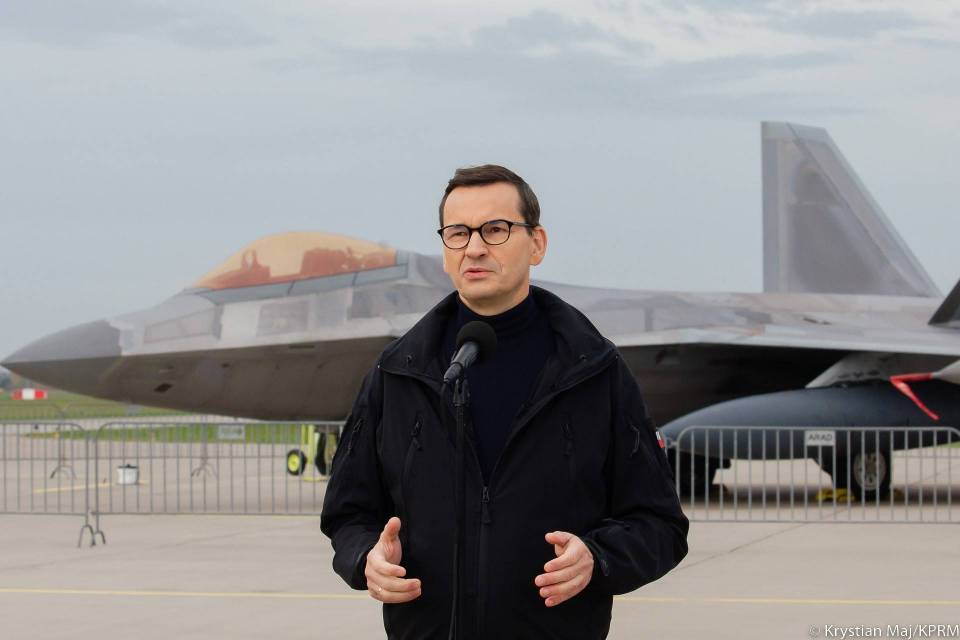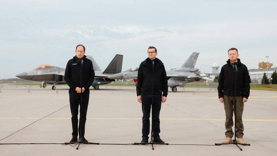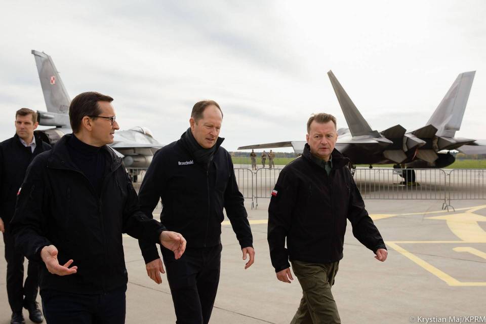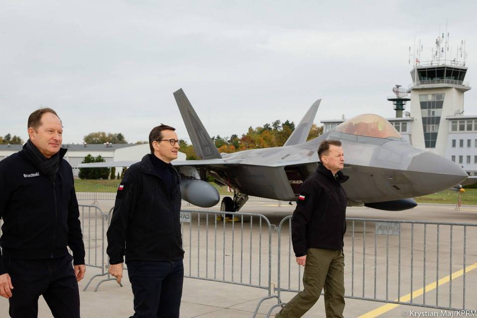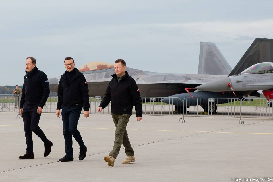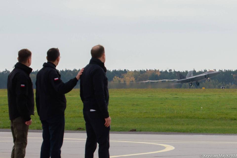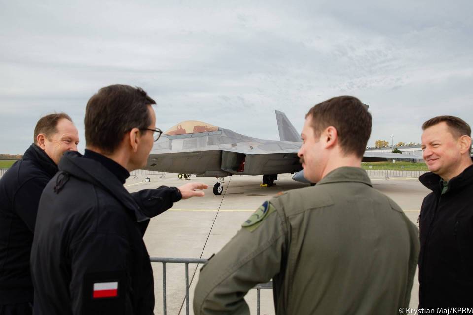 Mateusz Morawiecki, szef polskiego rządu i minister obrony Mariusz Błaszczak odwiedzili w poniedziałek 32. Bazę Lotnictwa Taktycznego w Łasku, gdzie spotkał się z polskimi i amerykańskimi pilotami myśliwców F-16 oraz F-22 biorącymi udział w misji NATO Air Shielding.