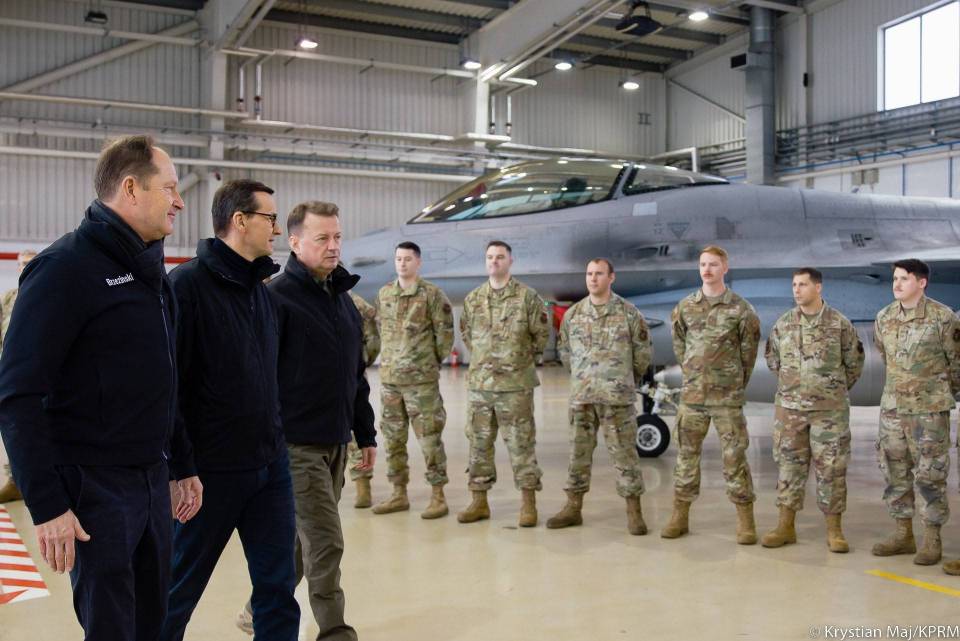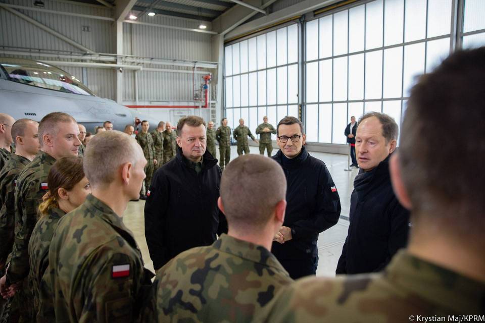 Premier Mateusz Morawiecki podczas wizyty w 32. Bazie Lotnictwa Taktycznego w Łasku spotkał się z wicepremierem, ministrem obrony narodowej Mariuszem Błaszczakiem oraz ambasadorem Stanów Zjednoczonych Markiem Brzezinskim.