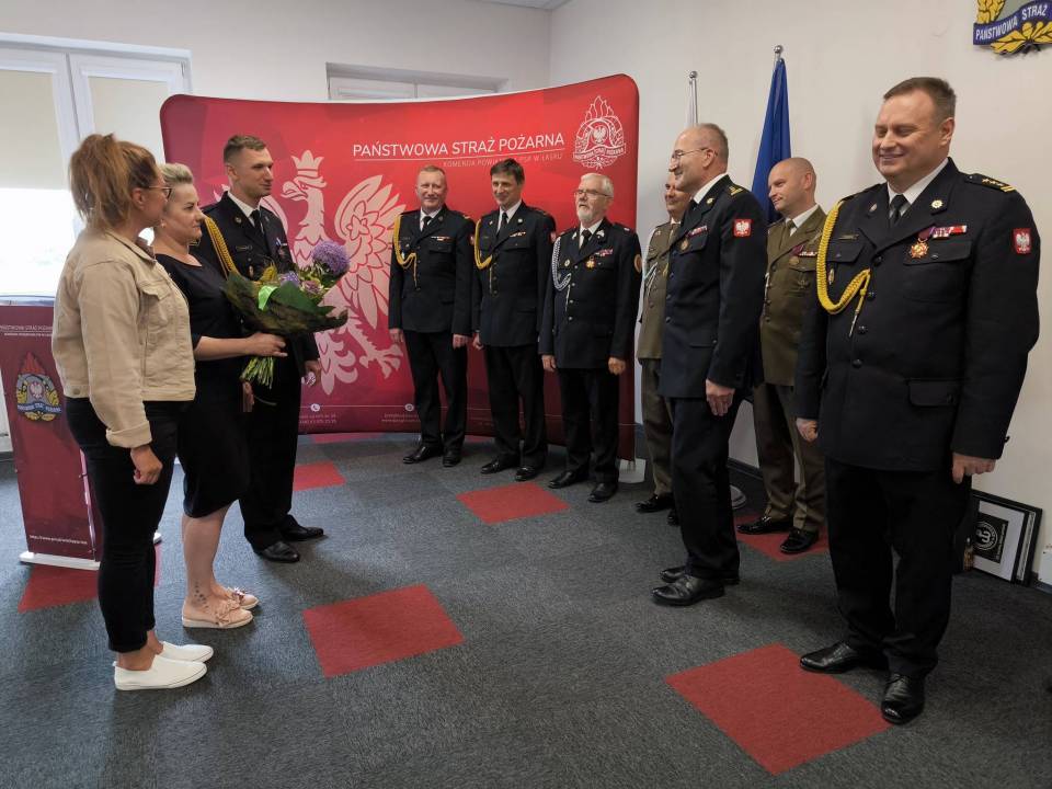W uroczystości, która odbyła się w siedzibie Komendy Powiatowej PSP w Łasku, wzięli udział m.in.: Piotr Wołosz - Starosta Łaski, dh Wojciech Pokora, wiceprezes Oddziału Wojewódzkiego ZOSP RP woj. łódzkiego, wójtowie gmin powiatu łaskiego, przedstawiciele zaprzyjaźnionych służb Wojska Polskiego, Policji, Żandarmerii, Nadleśnictwa Komendanci Powiatowi PSP z Sieradza i Pabianic KP PSP w Łasku.