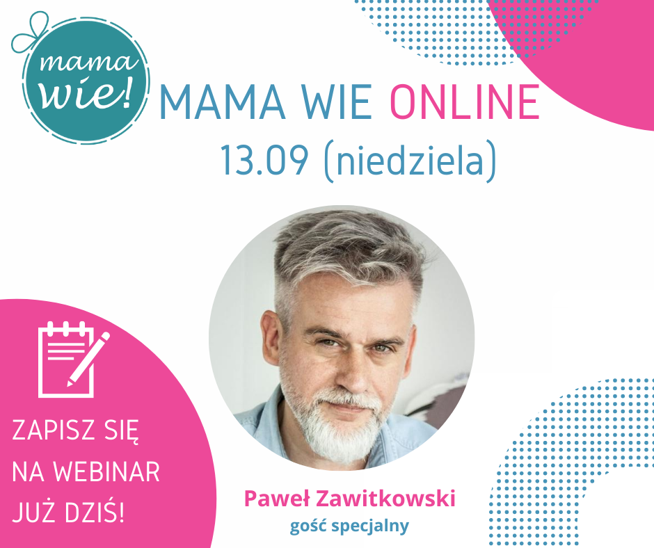 Bezpiecznie i wygodnie możecie teraz zdobywać cenną wiedzę bez wychodzenia z domu. Gościem specjalnym, który towarzyszy spotkaniom od początku, będzie znany fizjoterapeuta  Paweł  Zawitkowski - specjalizujący się w terapii neurorozwojowej, oddechowej i terapii jedzenia. Od lat doradza rodzicom jak przez dotyk, ruch oraz zwariowane pomysły wspierać prawidłowy rozwój ich dzieci.