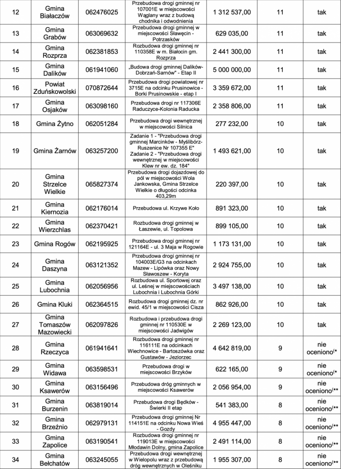 Dofinansowanie wyniosło od kilkuset tysięcy do 5 mln zł. Za te pieniądze rozbudowane zostaną m.in. ul. Sportowa i Leśna w Lubochni, ul. 3 Maja w Rogowie czy przebudowane drogi wewnętrzne w Borowej w gminie Koluszki. Umowy z samorządami zostaną podpisane jeszcze w marcu.