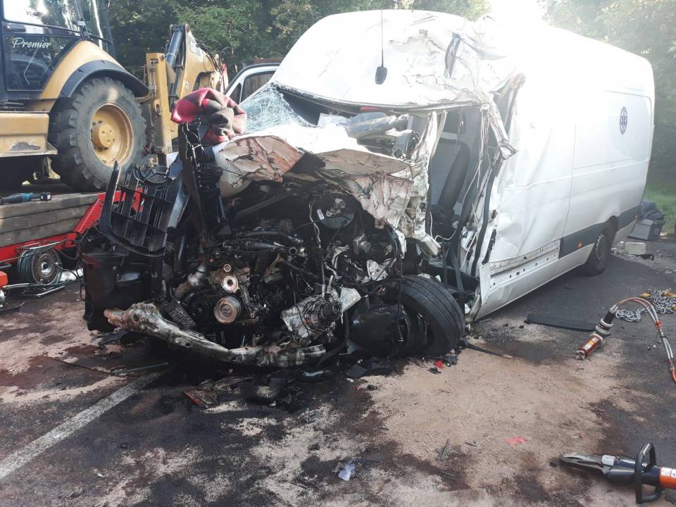 Jak relacjonują strażacy, na drodze krajowej nr 71, na wysokości skrętu do Łagiewnik, doszło do czołowego zderzenia busa dostawczego i ciężarówki z lawetą. W wyniku zdarzenia ranne zostały trzy osoby, z których dwie byłī zakleszczone w rozbitym pojeździe.