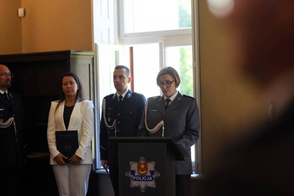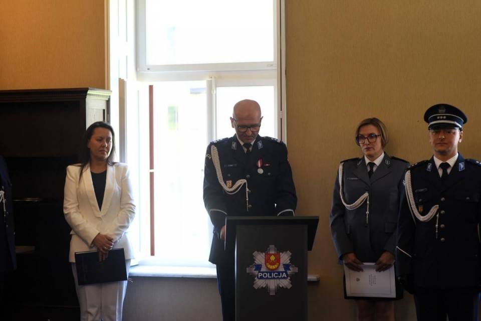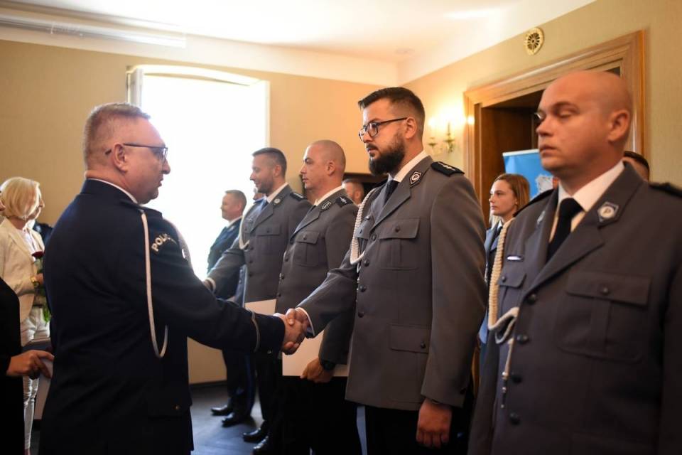 - Brązowa odznaka „Zasłużony Policjant" nadawana jest policjantowi w uznaniu jego szczególnych zasług i osiągnięć służbowych, którymi przyczynił się do ochrony bezpieczeństwa ludzi oraz utrzymania porządku publicznego. Następnie Panowie Komendanci wręczyli akty mianowania na wyższe stopnie policyjne - wyjaśnia młodszy aspirant Bartłomiej Kozłowski, rzecznik prasowy KPP Łask i dodaje: -W 2024 roku w Komendzie Powiatowej Policji w Łasku oraz Komisariacie Policji w Widawie nominacje na wyższy stopień służbowy otrzymało 29 policjantów. W korpusie oficerów starszych oraz młodszych akt nominacyjny odebrało dwóch policjantów, w korpusie aspirantów awanse odebrało 12 funkcjonariuszy, w korpusie podoficerów 8 policjantów, a w korpusie szeregowych akty mianowania odebrało 6 funkcjonariuszy.