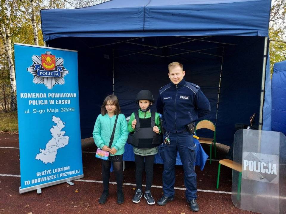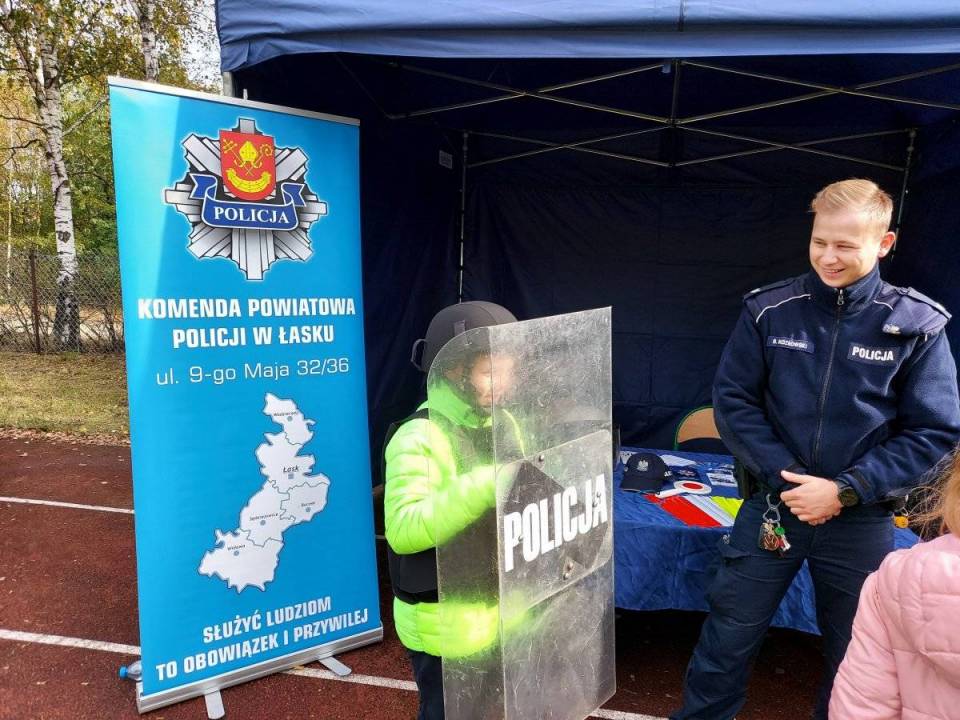 Ponadto każdy zainteresowany mógł również dowiedzieć się, jak wstąpić w szeregi Policji i jak wygląda praca policjantów. Dużą atrakcją dla najmłodszych okazała się również możliwość zobaczenia z bliska radiowozu, przymierzenia policyjnego wyposażenia oraz zrobienia sobie na pamiątkę odbitek linii papilarnych. Odblaski, które rozdawali policjanci zostały ufundowane przez Starostwo Powiatowe w Łasku.