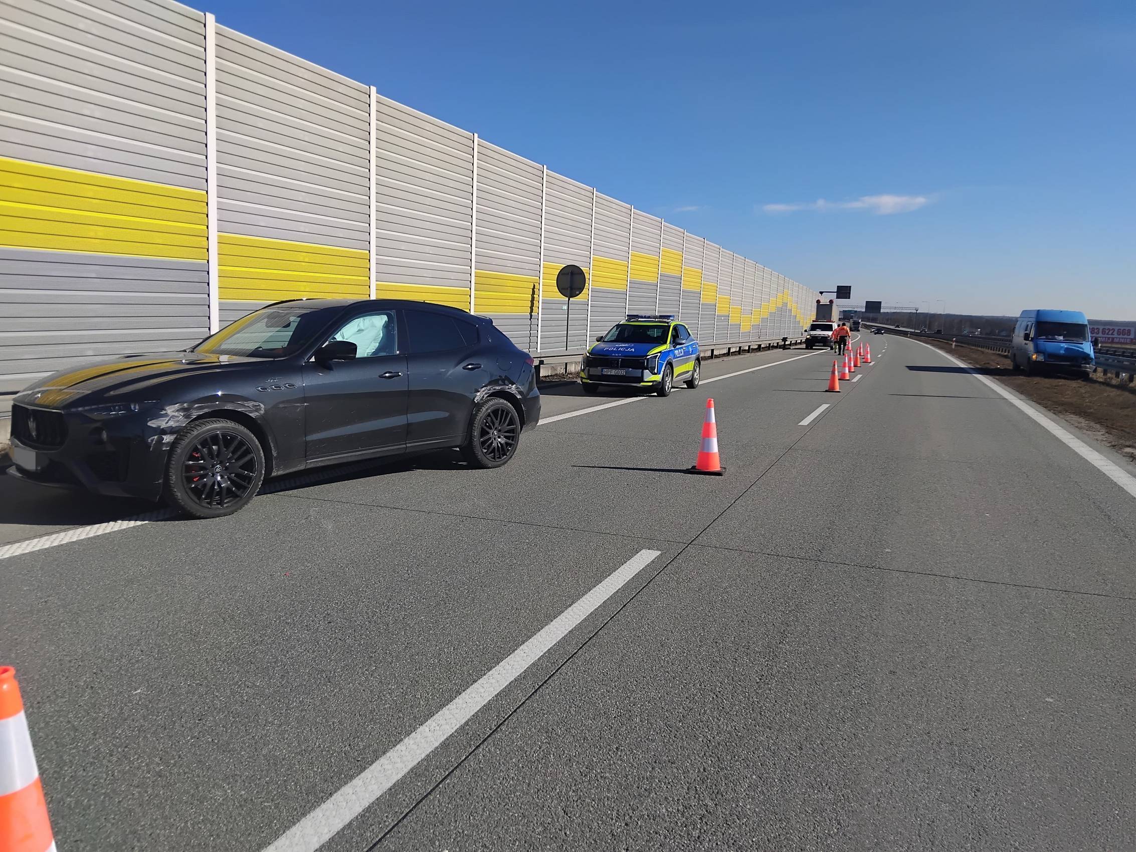 - Z ustaleń pracujących na miejscu policjantów wynika, że 41-letni obywatel Bułgarii, kierujący busem dostawczym marki Volkswagen, nie zachował bezpiecznej odległości od poprzedzającego go pojazdu i najechał na jego tył. Uderzony pojazd marki Maserati prowadziła 37-letnia mieszkanka Bytomia - mówi młodszy aspirant Bartłomiej Kozłowski z KPP Łask, oficer prasowy KPP Łask.